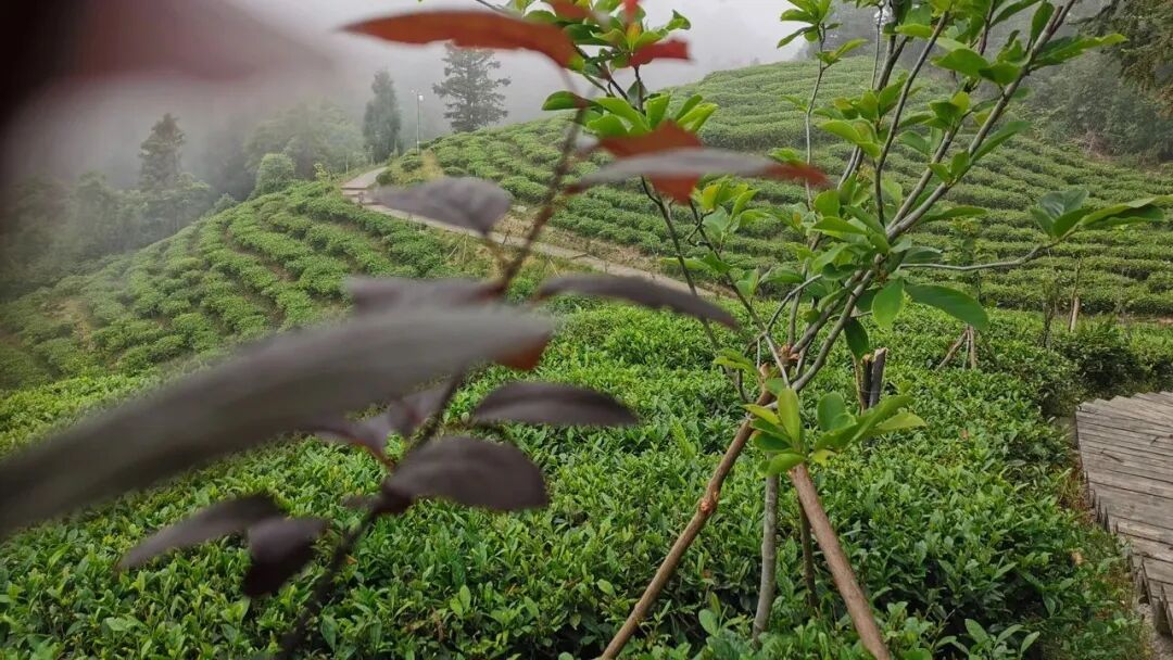 海拔每升高100米,温度下降0.6度,1千米相差6度,海拔高一点,温度低,而且正好是云雾层,云雾覆盖的位置,太阳光照射下来,是照射到云雾上,大部分反射回去了,少量照到茶叶上,是漫散射光,所以它相对照射的比较少。温度也比较低,所以氨基酸含量高,茶叶鲜爽味足。