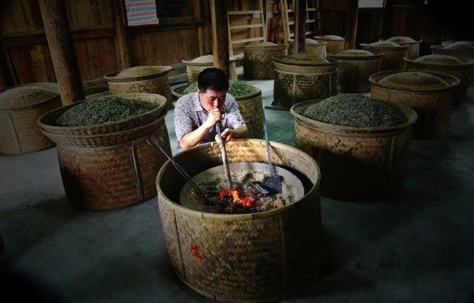 白茶采用传统的碳火烘焙来干燥,高山纯料茶青,日光萎凋而后炭焙三次烘干。