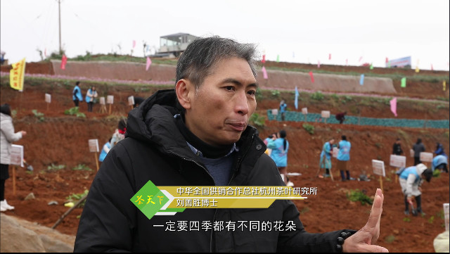“一个茶园里面,不能只有绿色的感觉,如果只有绿色的感觉那是一个错误的茶区,一定要四季都有不同的花朵,而且是引来大量蜜蜂、蝴蝶甚至于大量的寄生蜂,你把蜂源植物隔离带还有你的以草克草的全部概念做全的时候,包括你南北轴线的大隔离,还有防风林都做好的时候,你的茶园几乎不需要再使用所谓的传统性的农药。”