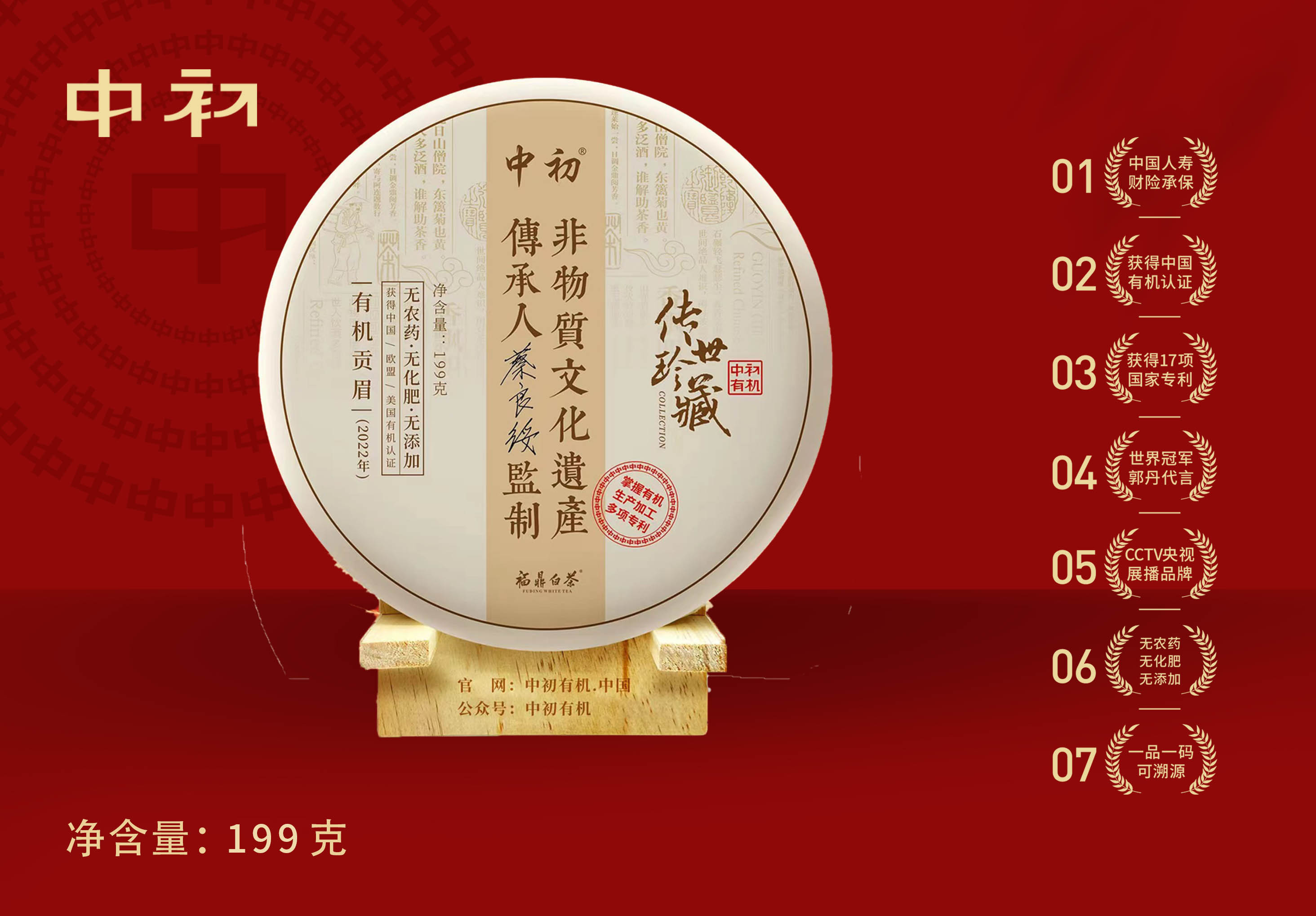 | 品名 | 有机白茶(中初·传世珍藏·紧压茶饼)2022贡眉 |